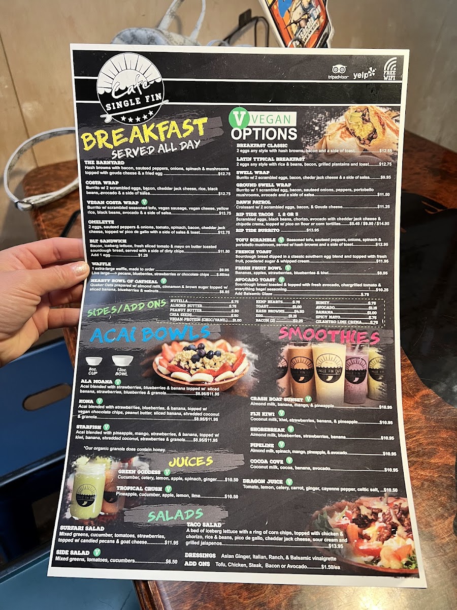 Welcome to Cafe Single Fin, a hidden gem located at 380 N 9th Ave, Pensacola, FL. This eclectic spot uniquely blends the vibrant atmosphere of a coffee shop with a laid-back skater and surfer vibe. Here, the menu caters to all palates, featuring delicious all-day breakfast options, refreshing vegan and gluten-free choices, and a pastry bar that’s hard to resist.